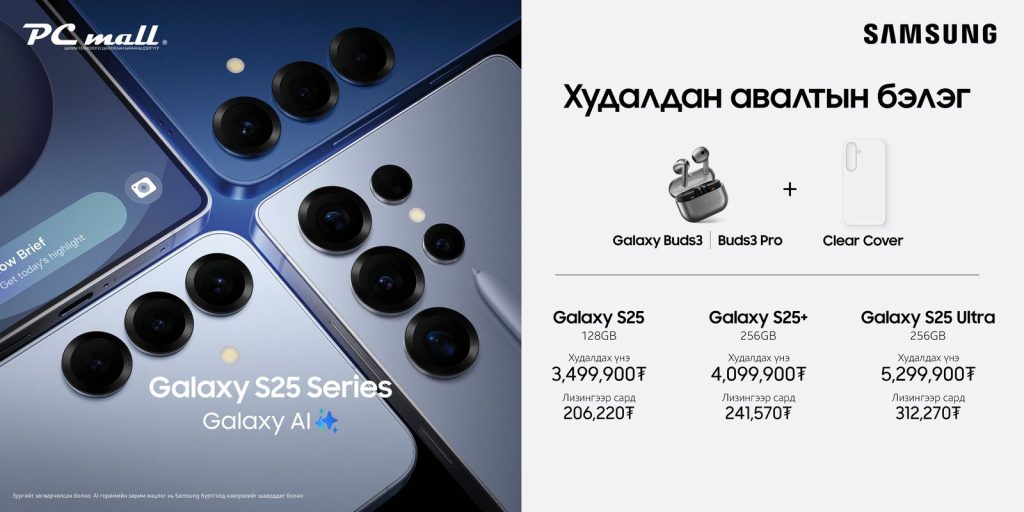 Ta PC mall-ooc Samsung Galaxy S25 series хамгийн хямд үнээр, өр орлогын харьцаа