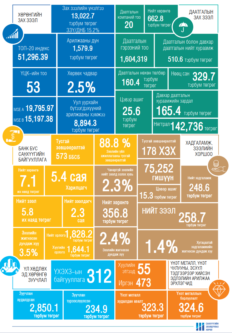 “Санхүүгийн салбарын тойм” өнгөрсөн оны дөрөвдүгээр улирлын тойм гарлаа. Тус тойм мэдээнд салбарын төлөв, хүртээмжийн үзүүлэлт, бүтээгдэхүүн үйлчилгээ, ашигт ажиллагаа, тогтвортой байдал, бодлого зохицуулалтын талаарх мэдээлэл багтсан. Мөн хөрөнгийн зах зээлийн бүлэгт уул уурхай гаралтай түүхий эдийн зах зээл /дуудлага арилжаа/ -ийн тоон мэдээлэл, банк бус санхүүгийн байгууллагын бүлэгт ногоон зээлийн бүтээгдэхүүн үйлчилгээ, сэндбокс бүлгийн шинэ бүтээгдэхүүн үйлчилгээ болон мөнгөн зээлийн үйл ажиллагаа эрхлэгчдийн мэдээлэлтэй танилцах боломжтой.