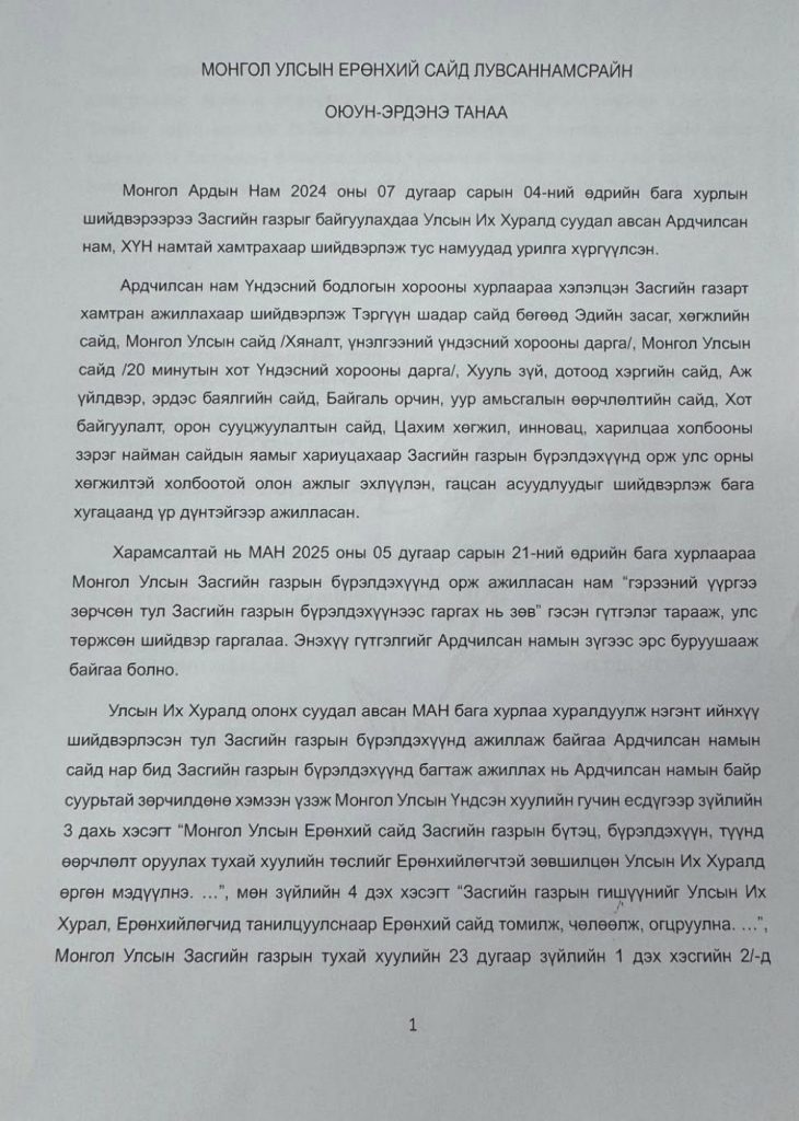 Уг мэдээлэлд Ерөнхий сайд Л.Оюун-Эрдэнэ асуудал нь УИХ-аар хэлэлцэгдэхээс өмнө АН-ын сайд