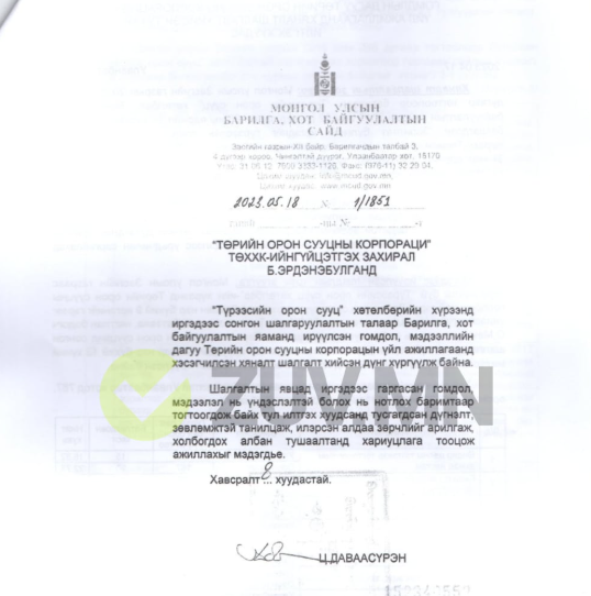 Дээрх хугацаанд нийт 105 хүнд дээрх хариуг явуулсан бөгөөд энэ нь гэрээ зөрчсөний улмаас хураагдсан орон сууцны тооноос /111/ бага байгаа юм.