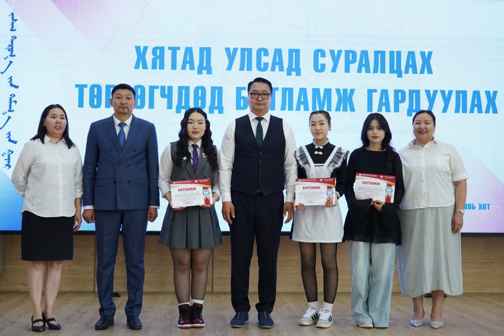 Дундговь аймгийн Засаг даргын 2024-2028 оны үйл ажиллагааны “Хөдөөгийн сэргэлт – Шинэ Дундговь” хөтөлбөрт тусгагдсан “Оюунлаг Дундговь” дэд хөтөлбөрийн хүрээнд Юнайтэд болон Ханз академитай хамтран БНХАУ-д суралцах болзол хангасан 21 төгсөгчид дэмжлэг үзүүлж, батламж гардууллаа.