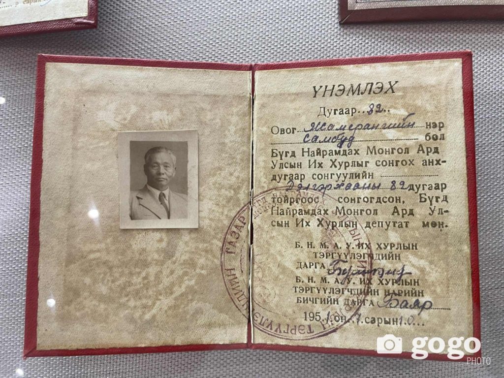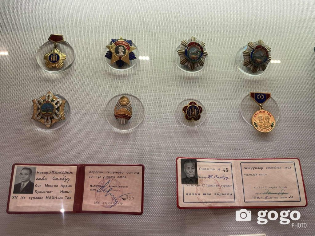 Үзэсгэлэнд Ж.Самбуу гуайн эдэлж хэрэглэж байсан зүйлсийн дээж тоглож байсан шатар, Хөдөлмөрийн баатрын албан соёмбот тэмдэг, Сүхбаатарын одон, гадаадын орнуудын төр, засгийн тэргүүнүүдийн бэлэг сэлтийн дээжээс дэлгэсэн байв.
