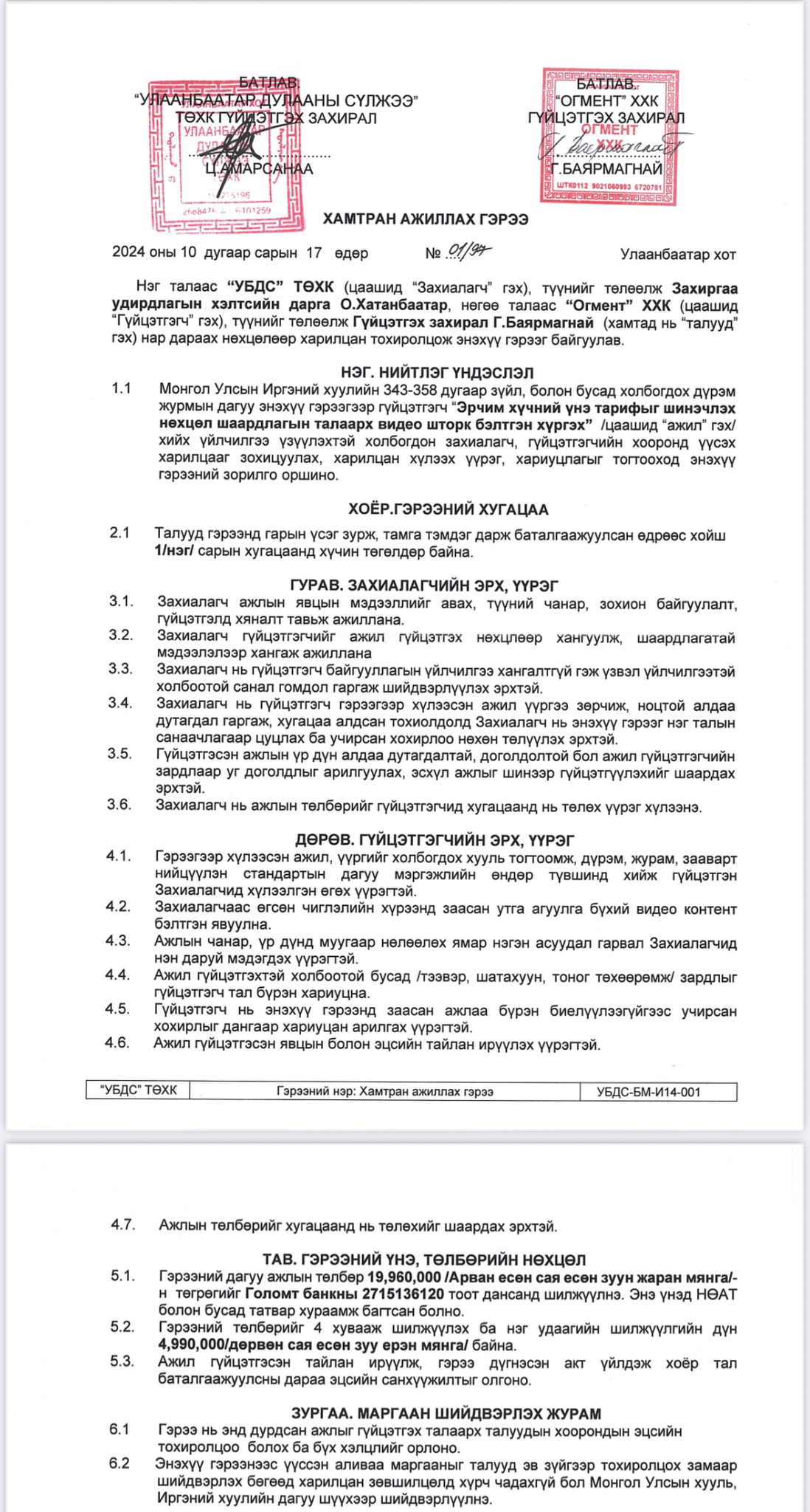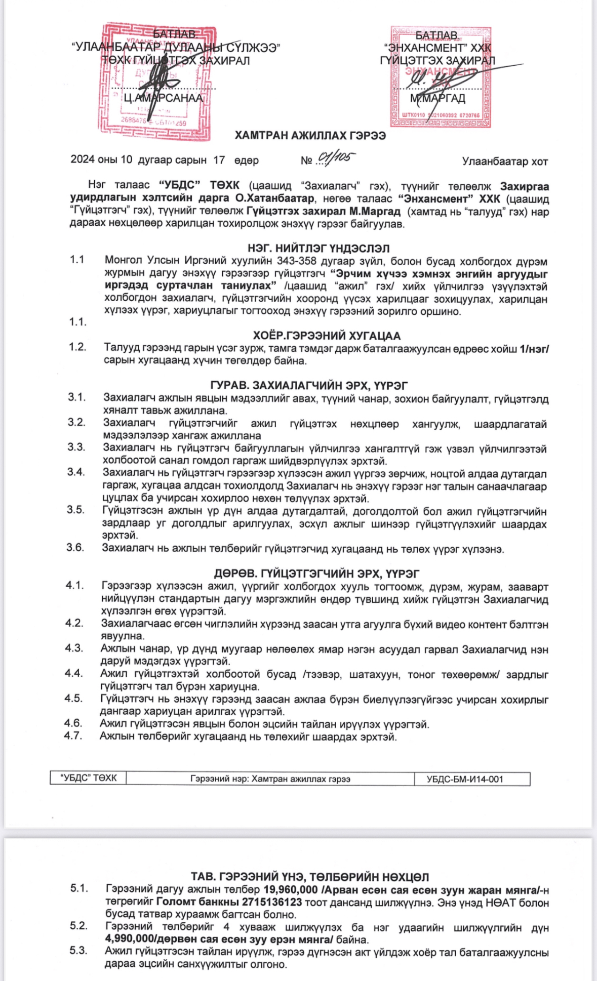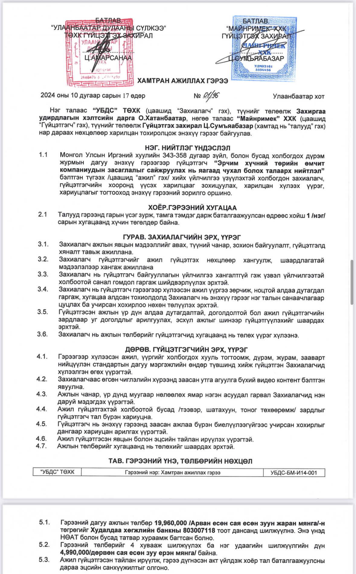 Нөгөөтэйгүүр энэ бүхнээс хамгийн их анхаарал татаж байгаа өөр нэг зүйл бол төлбөрийг гэрээ байгуулагдсан даруйд 4,990,000 төгрөгөөр 4 хуваан гүйцэтгэгч компанийн дансанд шилжүүлэх тухай гэрээний заалт юм. Энэ бол шилэн дансны системд мэдээлэхгүй байхаар зориуд зохицуулсан арга хэлбэр юм.