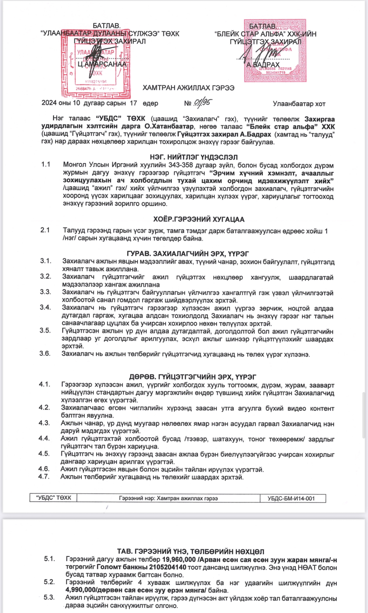 Хамгийн сонирхолтой нь энэхүү тушаалууд гарсан даруйд буюу мөн өдөр “Визлис Визард ХХК, “Огмент” ХХК, “Майнримек” ХХК, “Блейк Стар Альфа” ХХК, “Энхансмент” ХХК зэрэг нийт таван аж ахуйн нэгжтэй дээрх тушаалын дагуу гэрээ байгуулжээ.