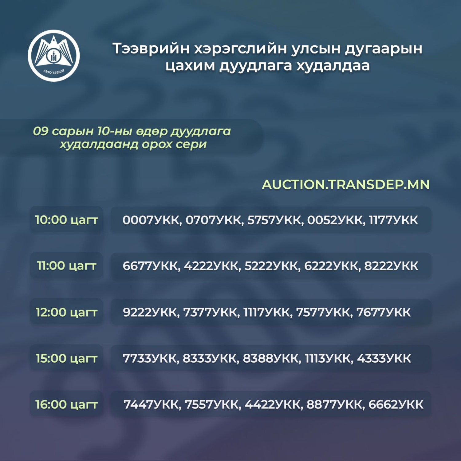 Маргааш дуудлага худалдаанд орох сери: 0007УКК, 0707УКК, 5757УКК…