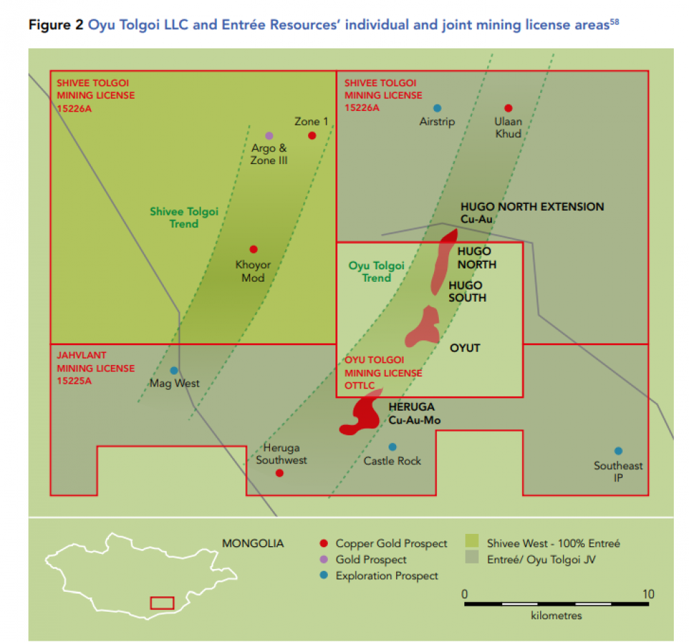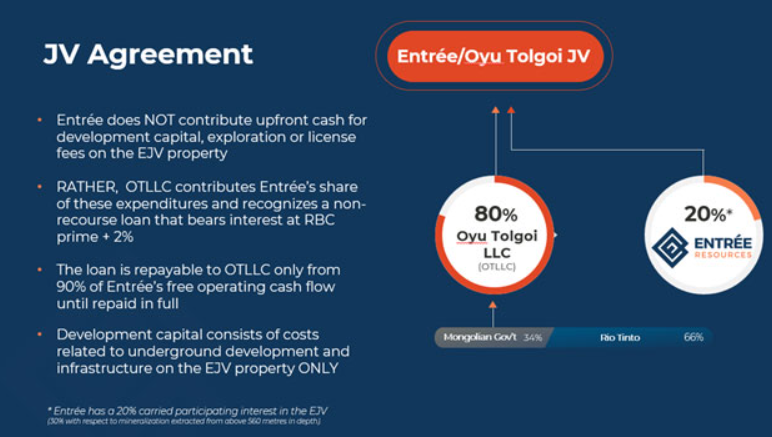 “Онтрэ гоулд”, “Рио Тинто” компаниуд 2004 онд байгуулсан гэрээгээрээ хүдэр “560 метрээс илүү” гүнд байвал “80:20”, “560 метр хүртэлх” хүнд байвал 70:30 хувиар хуваахаар тохирсон байдаг.