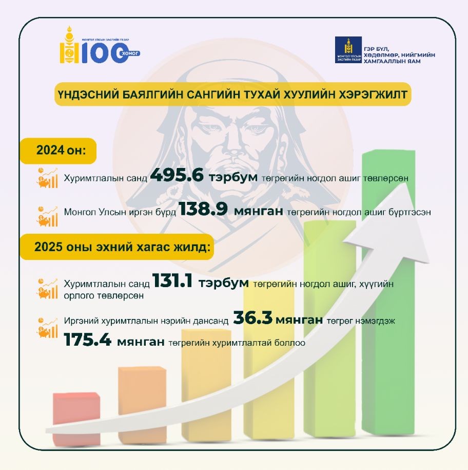 Үндэсний баялгийн сангийн тухай хууль хэрэгжиж эхэлснээр 2024 онд хуримтлалын санд 495.6 тэрбум төгрөгийн ногдол ашиг төвлөрсөн.