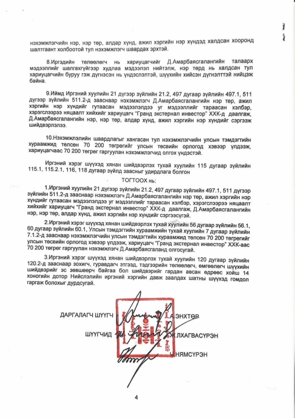4. Д.Амарбаясгаланд баримт, Б.Энхбаярт өшөө хорсол л байна