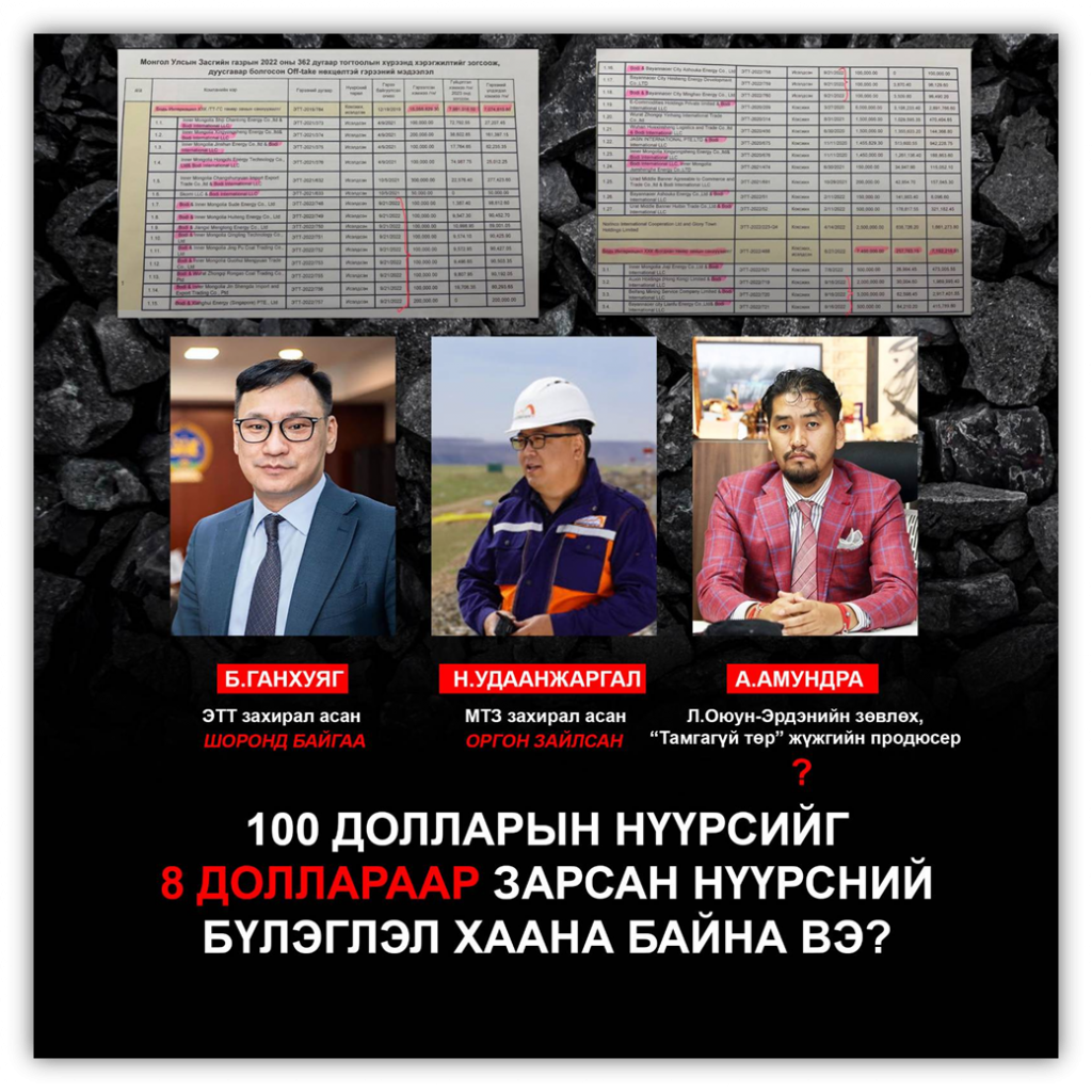 Нүүрсчид хэргээ шалгуулахгүй гэж амь тавихдаа төрийн эргэлт хийж, Үндсэн хуулийн цэцийн гишүүдийг шившиглэн, Ерөнхийлөгчийн бүрэн эрхэд ч халдах оролдлогууд хийж байна. Үндсэн хуулийн цэцийн дээр хөх тэнгэр л байдгаас бор тээг, нүүрсний утаа байхгүй.