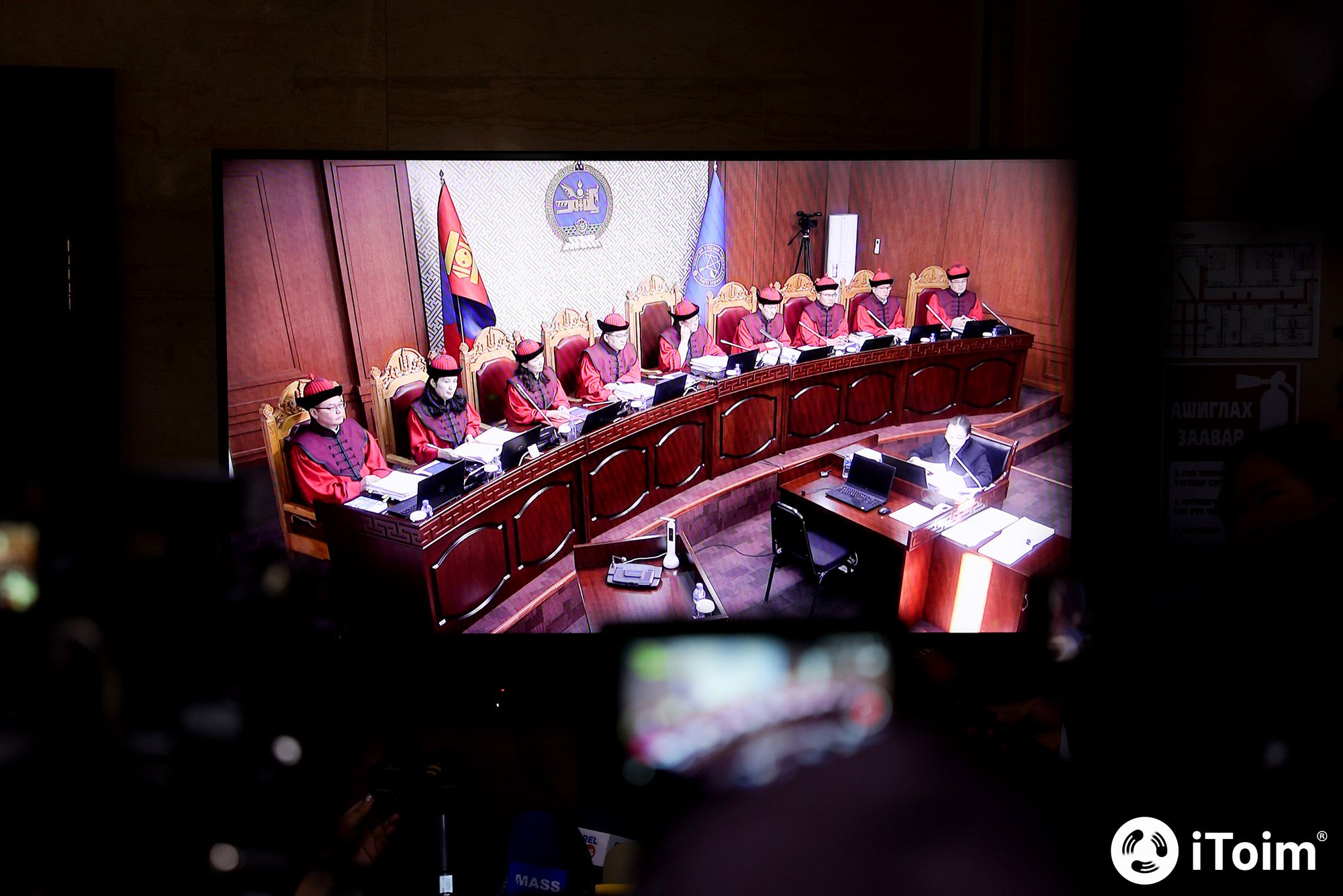 УИХ-ын дэд дарга Х.Булгантуяа: Хүчин төгөлдөр болоогүй хууль дээр дүгнэлт гаргаж өгөөч гэсэн. Процессын зөв болгох олон хүсэлтийг бид гаргалаа. Гэтэл нэг ч хүсэлтийг маань хангаж өгсөнгүй. УИХ-ын итгэмжлэгдсэн төлөөлөгчөөр томилсны дараа гэрчээр дуудаж байна. Тиймээс Үндсэн хууль зөрчсөн, төрийн эрх мэдлийг хууль бусаар авах гэж байгаа мэт хуралд бид оролцох боломжгүй байна. Тиймээс бид удаа дараа сунгаж өгөөч, процессыг зөв болгож өгөөч гэсэн шийдвэрлэж өгсөнгүй.Үүний дараа УИХ-ын итгэмжлэгдсэн төлөөлөгчид Үндсэн хуулийн цэцийн их суудлын хуралдааныг орхин гарав. Гэсэн ч хуралдаан үргэлжилж байна.