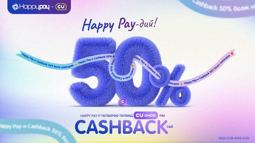 ‘50% CASHBACK’ аяны хугацаа: 2025 оны 11-р сарын 30-ныг дуустал.