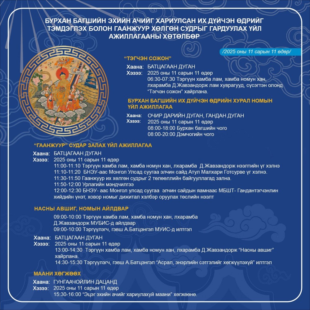 Энэ сарын 11-нд буюу маргааш бурхан багшийн эхийн ачийг хариулсан дүйчэн өдөр тохиож байна.