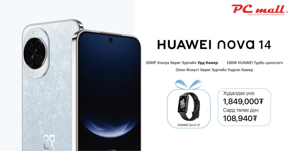 Технологийн салбарт тэргүүлэгч HUAWEI компани энэ оны 3 дугаар улиралд дэлхий дахинд танилцуулсан технологийн дэвшилтэт бүтээлүүдийн нэг болох HUAWEI Nova 14 series ухаалаг утас PC mall-д албан ёсоор худалдаалагдаж байна.