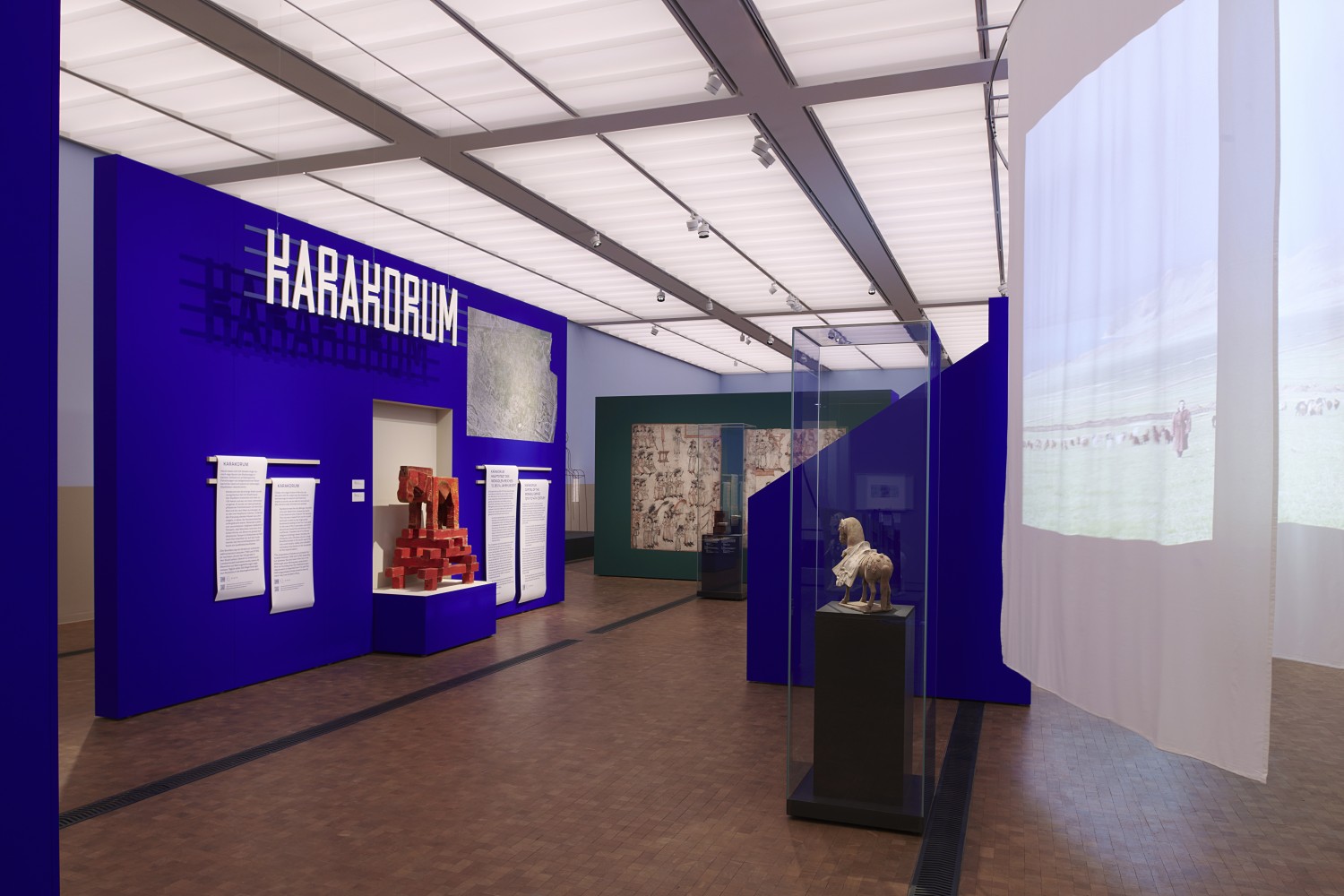 Өнөөгийн нийслэл Улаанбаатараас цаг хугацааны машинаар цааш аялан дараагийн танхимд ороход тэртээх 13-р зууны Их Монгол улсын нийслэл Хархорум хотын үеийн үзмэрүүд угтана. Тухайн үедээ Европыг ч айлгаж байсан нүүдэлчид өөрсдөө хот байгуулж, дэлхийн хэмжээний соёл иргэншлийн төв, олон шашны зэрэгцэн орших цэг байсан тухай үзэсгэлэнгийн энэ хэсэг өөрийн “хэлээр” хүүрнэж байлаа.