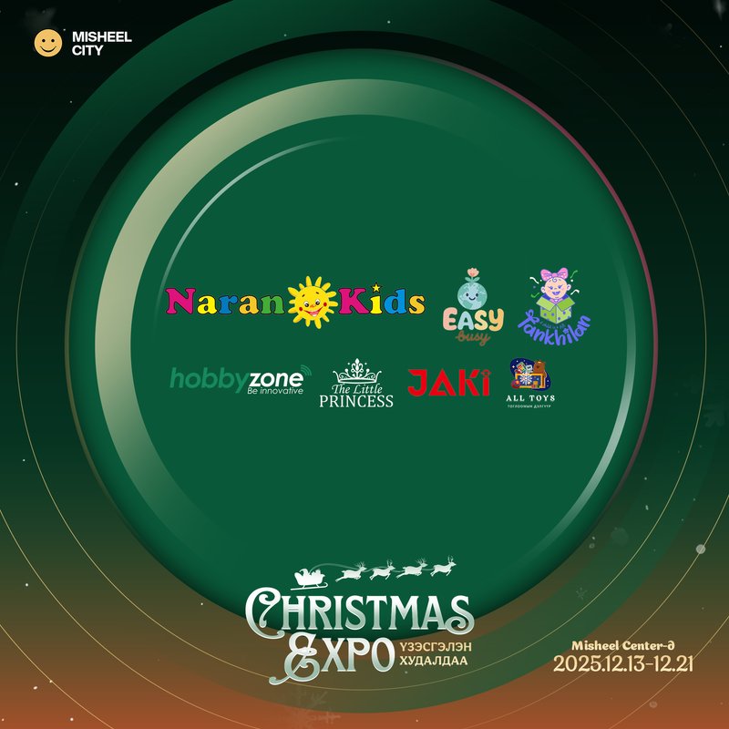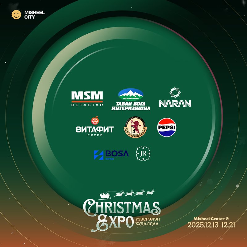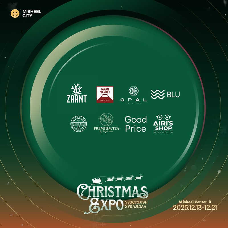 Шинэ жилийн баярт зориулсан 100 гаруй брэнд, үйлдвэрлэгч, импортлогч байгууллагуудыг нэгтгэсэн Christmas Expo 2025 нь 2025.12.13, 14, 20, 21-ний өдрүүдэд Misheel Street-д зохион байгуулагдана. Гацуур мод, шинэ жилийн бэлэг, гоёл чимэглэл, тоглоом, бэлэг дурсгал, гоо сайхан, хүнсний бүтээгдэхүүн болон бэлгийн багцуудыг нэг дороос сонгох боломжтой.