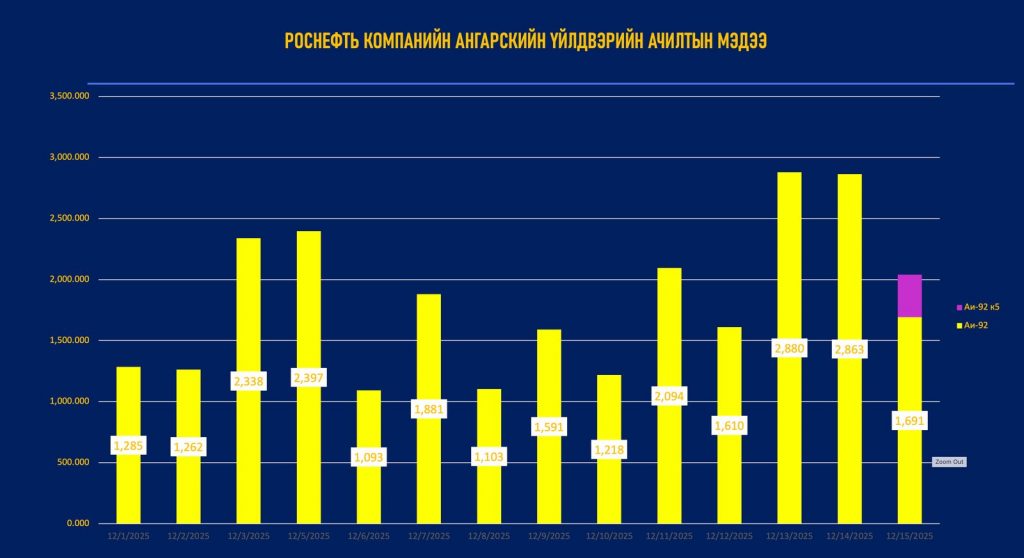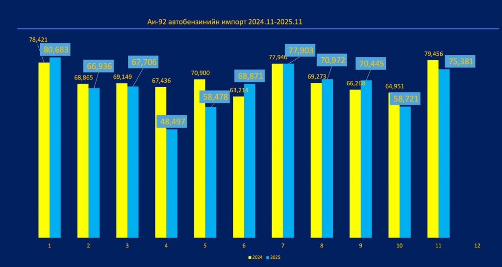 Энэ онд 2024 онд импортолж байсан бүтээгдэхүүнтэйгээ дүйцэхүйц хэмжээнд АИ-92 автобензинийг импортолж байгаа ба үүнээс нийлүүлэлт тасраагүй тогтмол хийж байгааг харж болно гэв.
