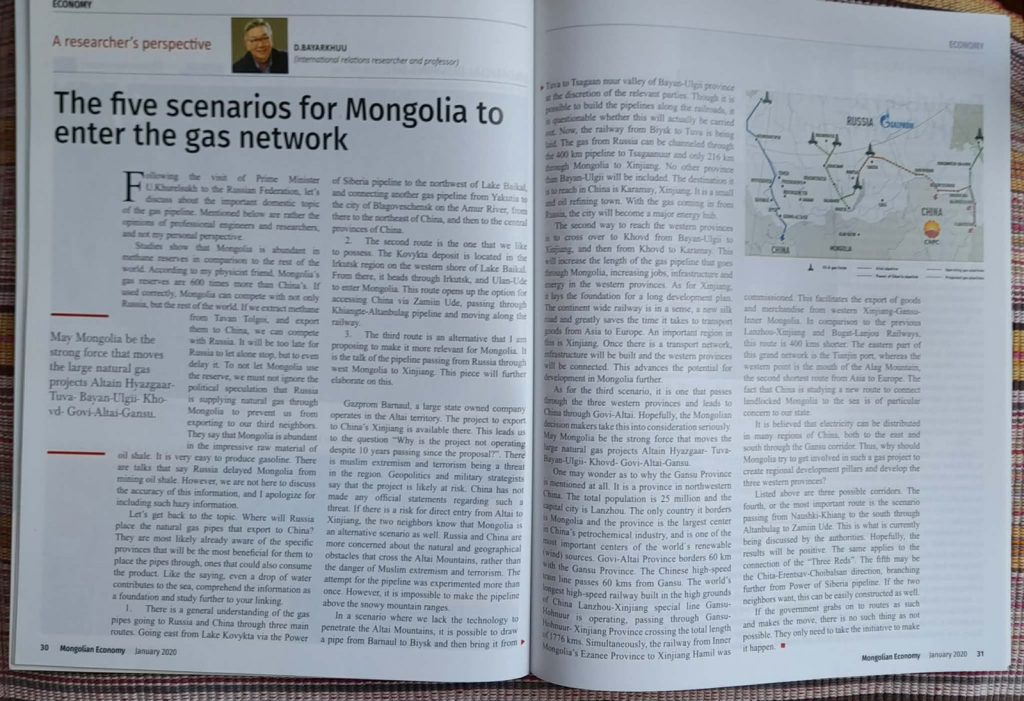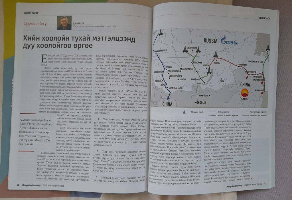 Оросын “Газпром межрегионгаз Новосибирск” гэх төрийн өмчит томхон компани, түүний 49 охин компанийн борлуултын тухай судалгаатай танилцлаа. ОХУ-ын 67 бүс нутагт байгалийн хийн хангалт хийдэг, үүнд Новосибирск, Томск муж, Алтайн хязгаар, БНАлтайУ гэхчлэн дотоодын томхон хэрэглэгчийн сацуу БНХАУ-ыг баруун хойноос нь хангах төсөл лав 10 жилийн өмнө бэлэн болсон, хэрэгжиж эхлээгүй гэх мэдээлэл байна. Оросыг газжуулах хөтөлбөр амжилттай хэрэгжиж байгаа ч экспорт болж хатуу валютаар Ази руу зарагдаагүй өнөө хүрчээ. Европ руу гаргадаг нь түмэн бэрхшээл, санкцтай тулгараад хэцүүхэн байгаа.