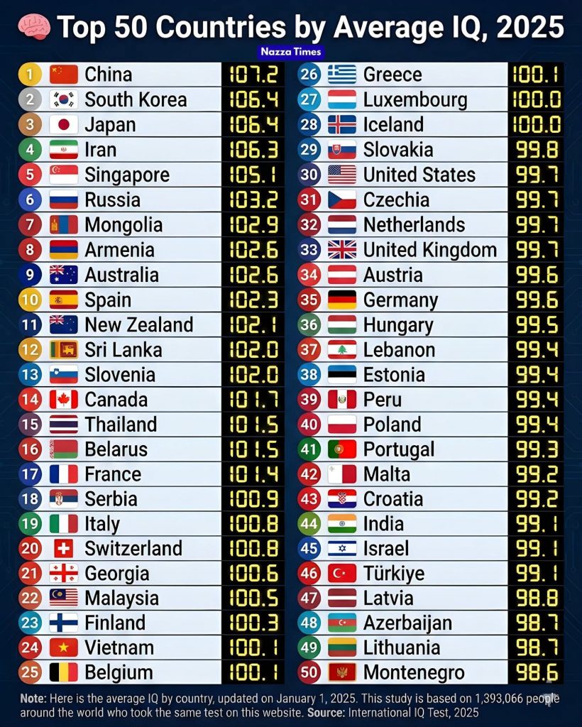 Тав. IQ-гаараа дэлхийд 7-рт