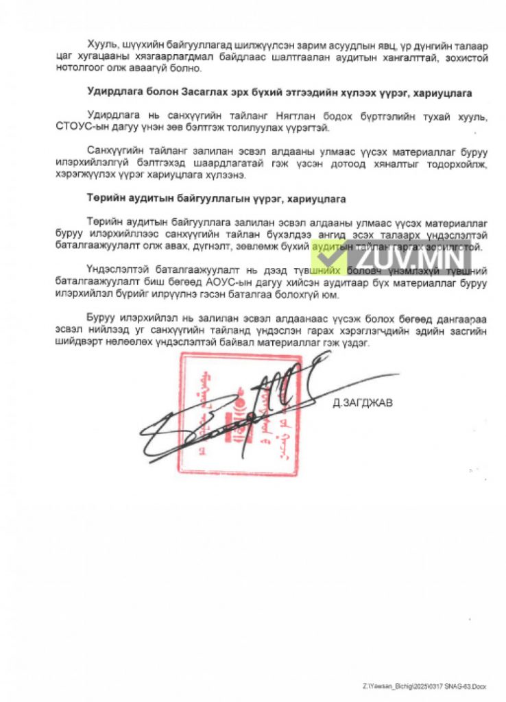 28 тэрбумын гурван асуудалд зөрчлийг таслан зогсоох, сахилгын хариуцлага тооцуулах албан шаардлага тус тус хүргүүлжээ