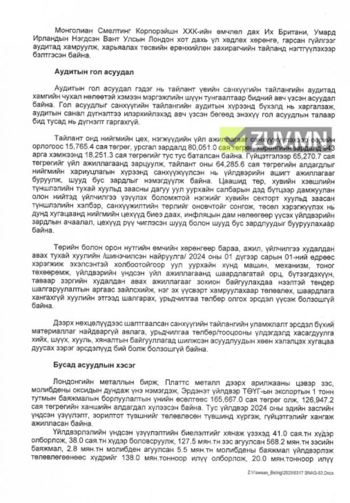 Эрдэнэт үйлдвэрийн Улаанбаатар хотын төлөөлөгчийн газар цалин, томилолтын зардлыг 40 сая төгрөгөөр хэтрүүлэн зарцуулжээ