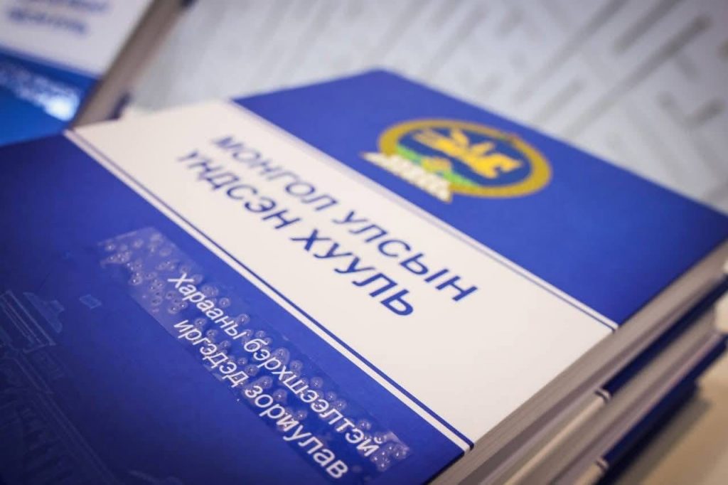 Монгол Улсын Үндсэн хуулийн брайл үсгээр хэвлэсэн хувилбар номын нээлт болж байна. Энэ үеэр УИХ-ын дарга Н.Учрал үг хэллээ.