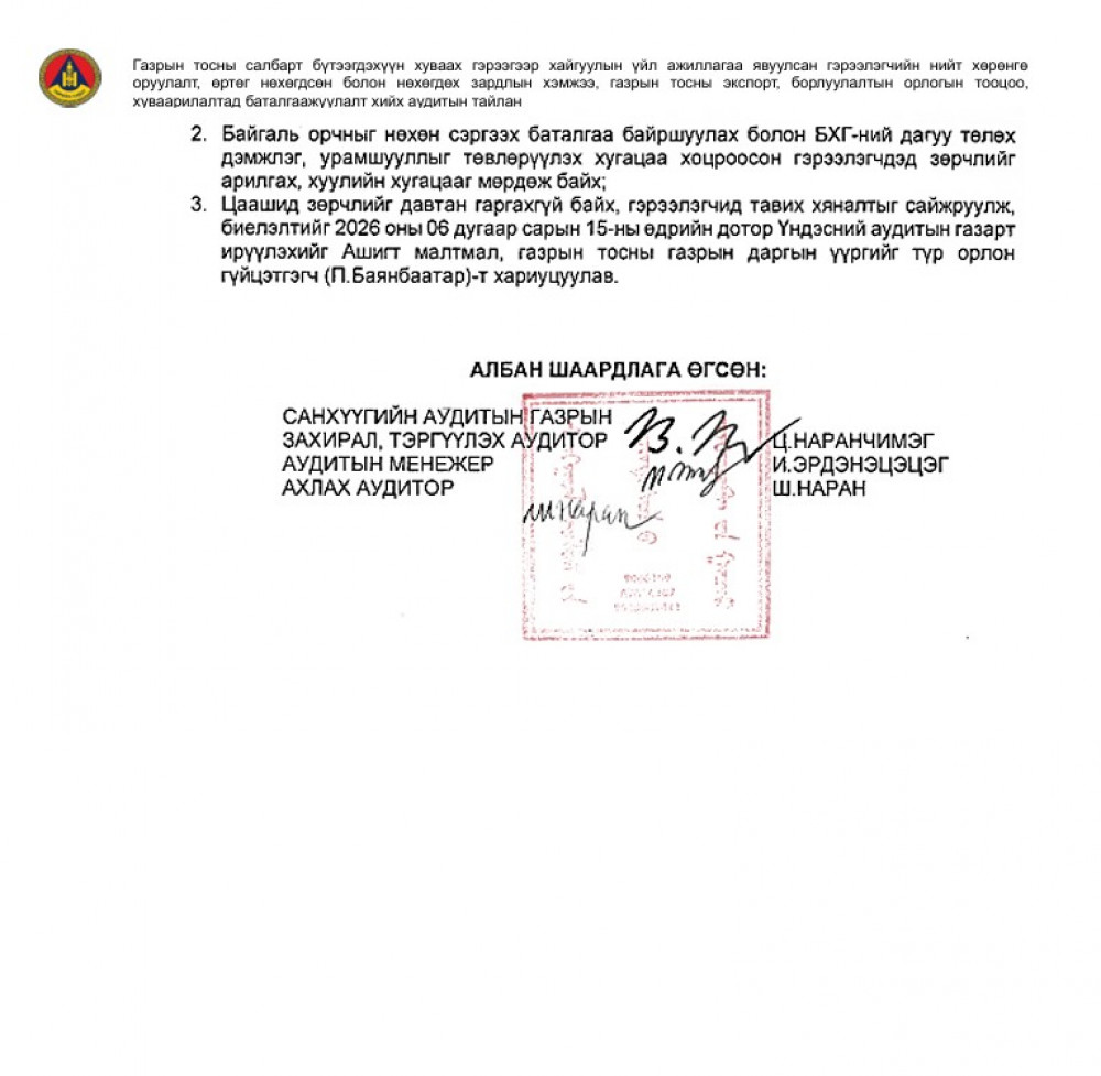 Түүчнлэн цооногийн DST хэмжилтийн ажил амжилтгүй болсон 256,293.03 ам.доллар, тусгай зөвшөөрөлгүй аж ахуй нэгжээс шатахуун худалдан авалт хийсэн зэргийг шалгалтаар тогтоосон байна.