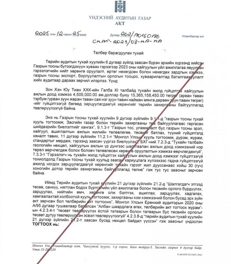 Хамгийн ноцтой нь Зон Хэн Юу Тиан ХХК 15 тэрбум төгрөгийн акт тогтоосон ч холбогдох захиргааны байгууллагад төлөөгүй байгаа аж.