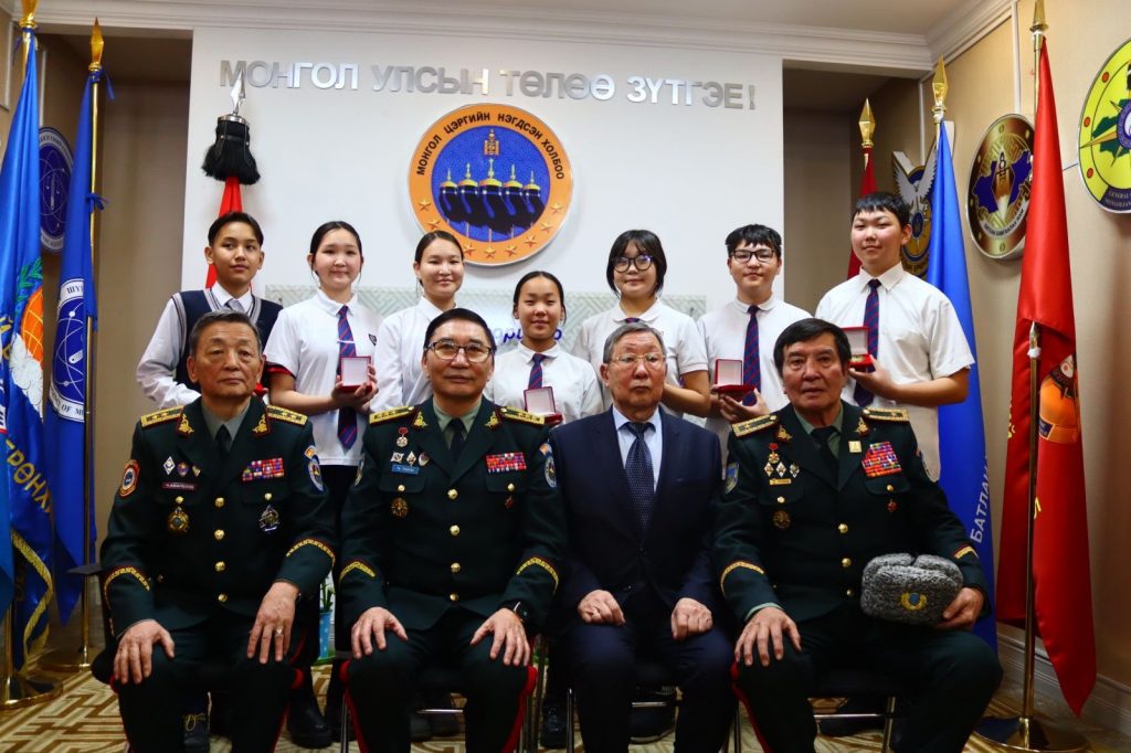 Энэхүү ёслолын ажиллагаанд Нийслэлийн Ерөнхий Боловсролын 33 дугаар сургуулийн сурагчдын төлөөлөл оролцож , 1945 оны чөлөөлөх дайнд аав, өвөө нь оролцож ялалт авчирсан баатарлаг дайчдын үр хүүхдүүд, ач зээ нарыг Чөлөөлөх дайны медалаар шагнагдсанд баяр хүргэж, ахмад дайчид ах эгч нараараа бахархаж байгаагаа илэрхийлсэн юм.