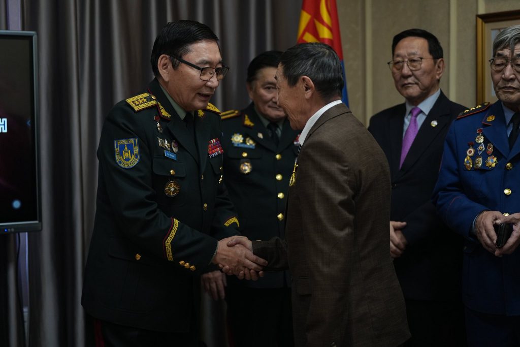 ШШГЕГ-ын бригадын генерал Д.Батжаргал, Дайн энхийг дэмжих ажиллагаанд оролцогчдын хорооны ерөнхий нарийн бичгийн дарга хурандаа Г.Лүндэн нар ахмад дайчдад гардуулан өглөө.