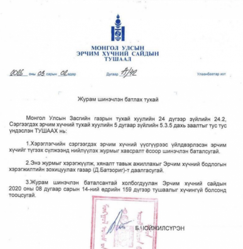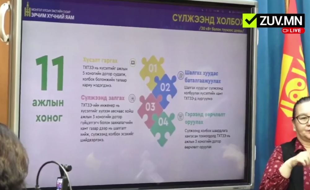 Эрчим хүчний сайдын энэ сарын 2-ны өдрийн 42 дугаар тушаалаар Хэрэглэгчийн сэргээгдэх эрчим хүчний эх үүсгэвэрээс үйлдвэрлэсэн эрчим хүчийг түгээх сүлжээнд нийлүүлэх журмыг шинэчлэн баталжээ. Эрчим хүчний дэд сайд С.Далхаасүрэн энэ талаар мэдээлэл хийлээ.