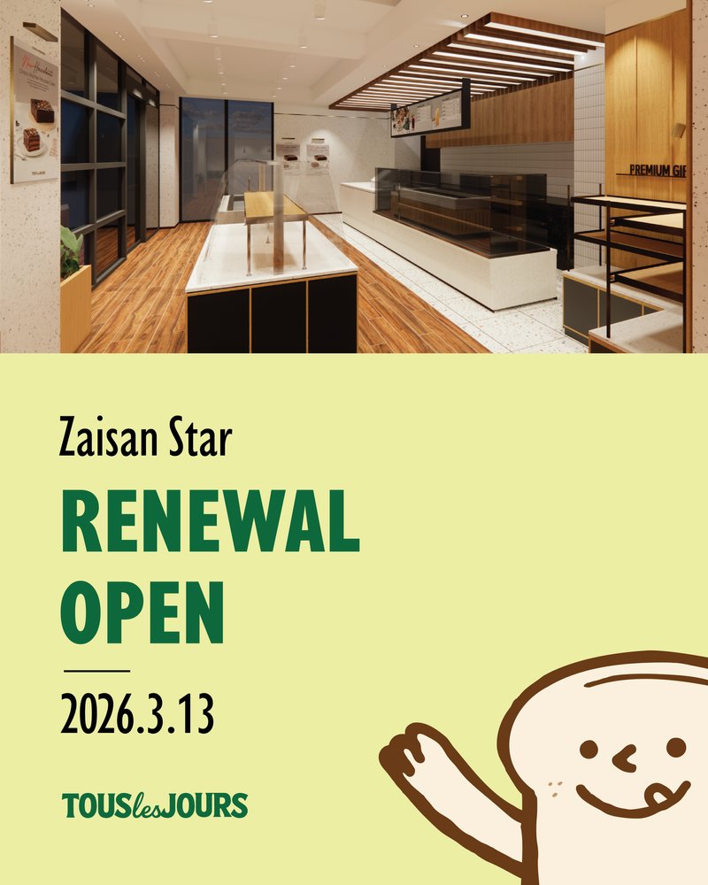 Дэлхий даяар 1,900 гаруй салбартай олон улсын бэйкэри сүлжээ болох TOUS les JOURS-ийн Зайсан Стар салбар нь брэндийн шинэчилсэн дүр төрх, орчин үеийн интерьер дизайн, бүтээгдэхүүний байршуулалт, үйлчилгээний урсгал, хэрэглэгчийн хөдөлгөөнийг оновчтой төлөвлөсөн шийдлээрээ онцлог болжээ.
