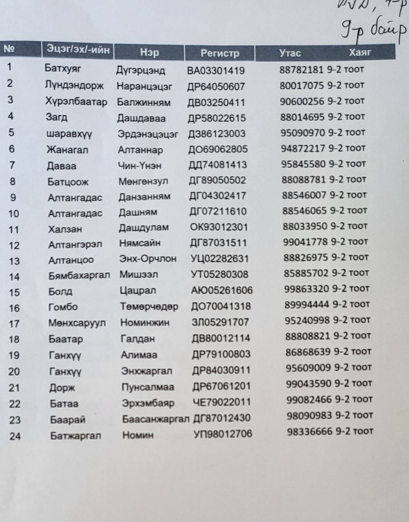 “Царцаа” буюу сонгуульд санал өгүүлэх зорилгоор Баянгол дүүрэгт шилжүүлсэн иргэдийн бүртгэл.
